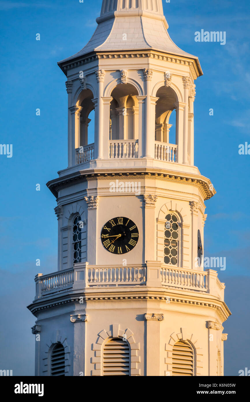 Charleston South Carolina Historic Downtown Saint Michael S Church Steeple Clock Sunset Light Clock Sc170514159 Stock Photo Alamy